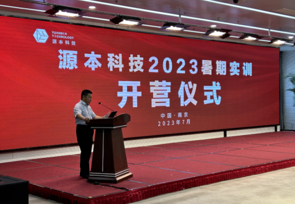 暑期实训营学员代表-来自南京邮电大学的朱涛涛同学代表实训营的学员作了发言。学员们期待实训期间所取得的宝贵经验和技能,承诺将持续努力锻炼技能,并应用于未来的学习与开展。同时,他们感谢实训营为他们给予机会,并表示将珍惜这段宝贵的经历。